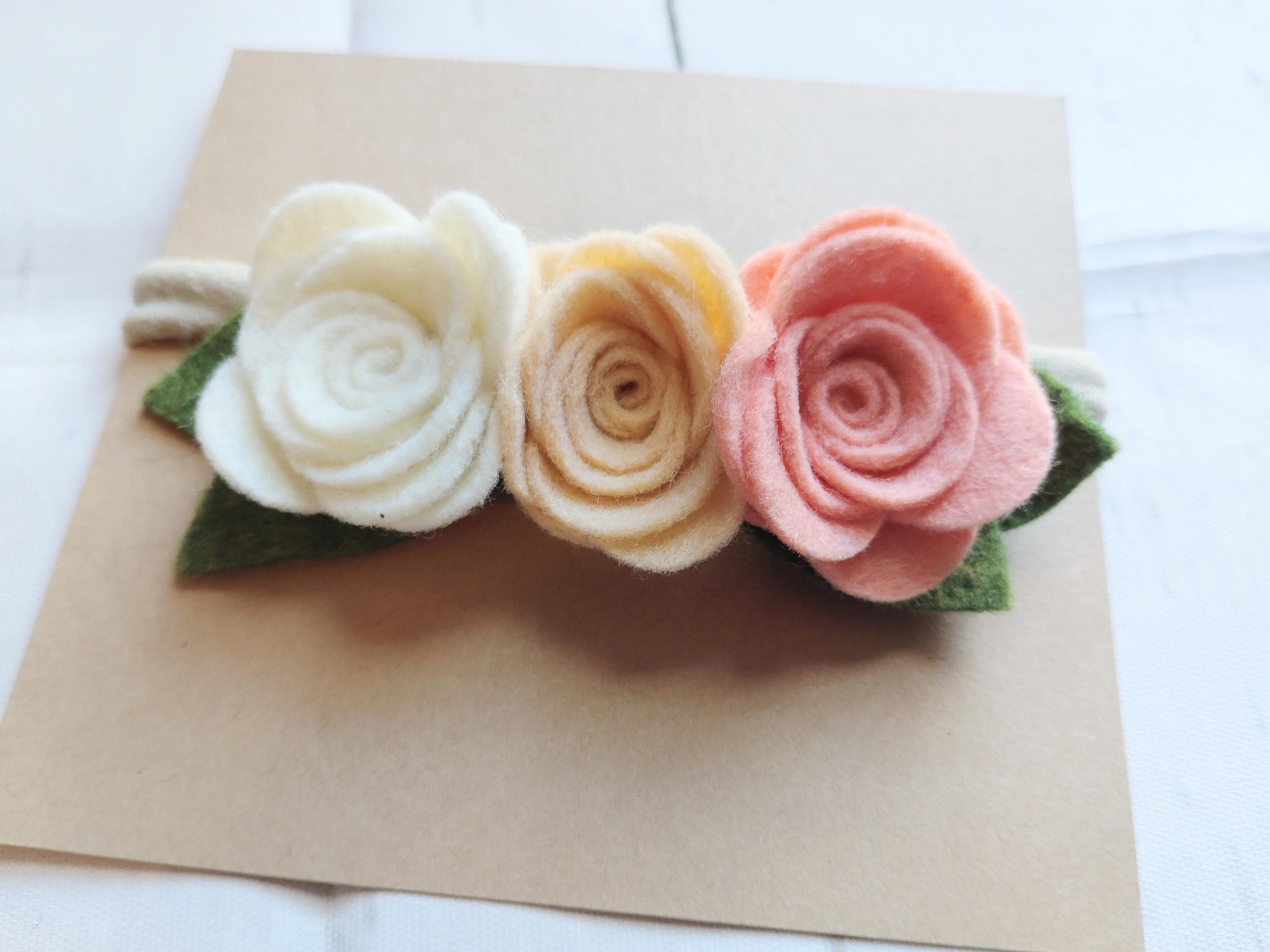 Handmade Felt Floral hairband made from wool blend and high quality felts. Soft nylon headband that gently fits the tiniest heads up to adults.