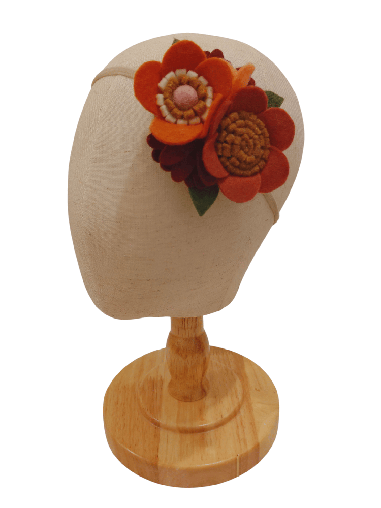 Handmade Felt Floral hairband made from wool blend and high quality felts. Soft nylon headband that gently fits the tiniest heads up to adults.